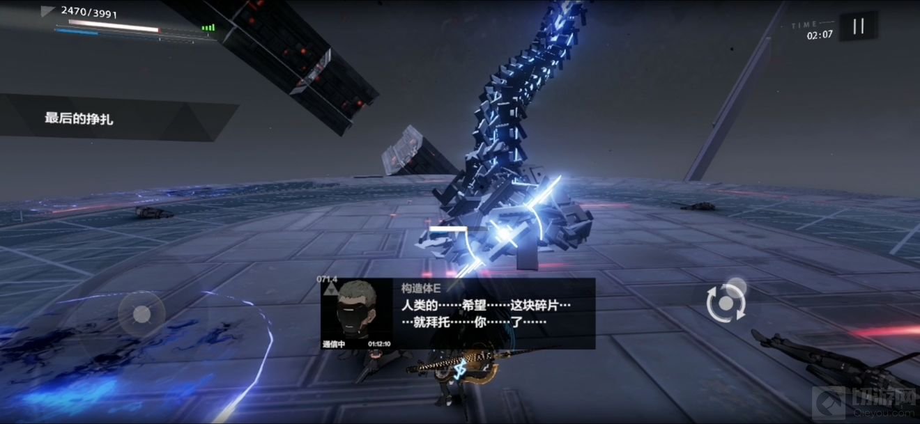 为了方便触发条件,在剩最后一人的时候才走到他附近,在跪下之后可以利用Boss的攻击触发超算冲过去对话。
