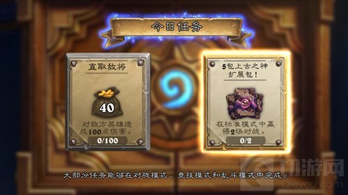 此外,你还会接到两个一次性的特殊任务:在标准模式中赢得2场对战,便可获得5包“上古之神的低语”卡包!
