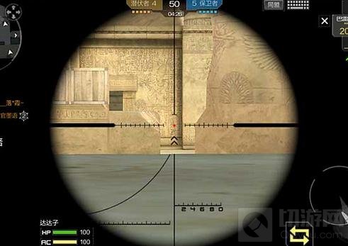团队战向来是短兵相接的地图,在新地图金字塔中,讲巴雷特-齐天大圣架在下图这个位置是极好的,这里是金字塔复活点出来的必经之路之一,而且开口较大,开启辅助狙击这个功能后可以很轻松的狙到路过的敌人,需要注意的是,在敌人的同样位置也有可能会有敌方狙击手,所以优先击杀高台上敌人,这里就需要玩家的瞄准能力和开枪速度了。