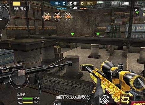 拥有了巴雷特-齐天大圣套装当然要来一把新年广场地图咯!在狙击频发的中路,依靠套装属性:速跑的激活,我们更快速度的占领狙击点优势,开启一倍镜就能很轻松的观察到对岸的情况。