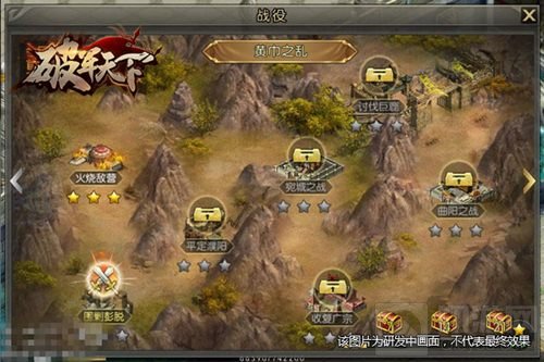 《破军天下》手游战役玩法多样,游戏副本中,从黄巾之乱起始到天下局势三分,在进入三国争霸的阶段,每场战役都是难能可贵的经历。玩家亲身体会各时期战役引起的历史转变,在不断的对战中,获得更加真实的战斗情绪。历史战役将带你回到兵荒马乱的时代,引导你历练成一代枭雄。
