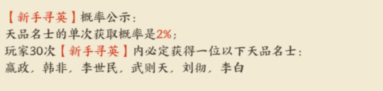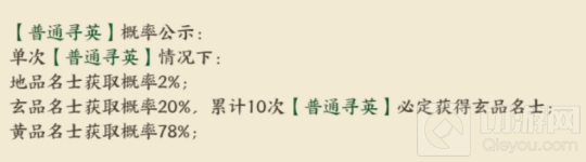 其实看到普通卡池就能发现,这机制还是挺坑的,建议大家直接抽高级卡池和新手卡池。而且记住一定要攒10连抽,10次新手卡池必得地品以上名士,10次高级卡池必得地品以上名士,10次普通卡池必得玄品名士。