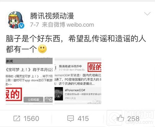 此后,有消息称任天堂随后将会开放各个国家地区的正式版客户端,中国国内的代理商也正在沟通。正当网上疯传此代理商可能是腾讯之后,腾讯视频动漫在微博出面辟谣并表示:脑子是个好东西,希望乱传谣和造谣的人都有一个。