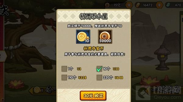 本次祈愿夺宝玩家可以购买夺宝币来参与,每次夺宝都会积累幸运值。