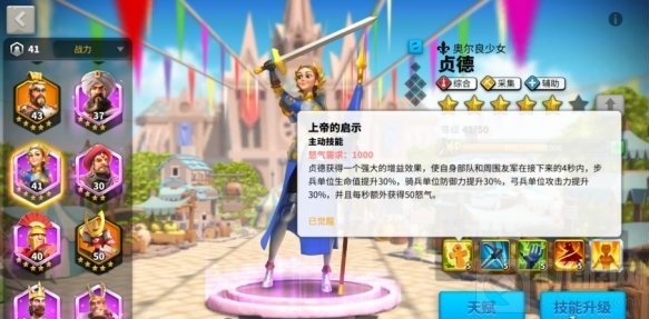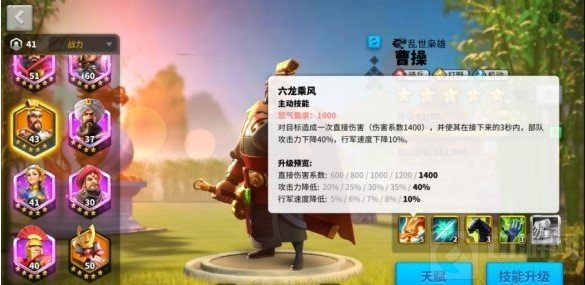 源义经获取门槛非常低,首充就可以获得,并且可以轻松将一技能升到五级,曹操可以从宝箱获得,两个将领的一技能伤害在前期非常可观,加上被动对骑兵攻击的加成和野蛮人的增伤,伤害爆炸。此外曹操一技能还能降低40%的对方攻击力,并且有几率回血,提高了生存能力,在满编T2或者T3T2骑兵混编的情况下,轻轻松松就能拿下圣坛。