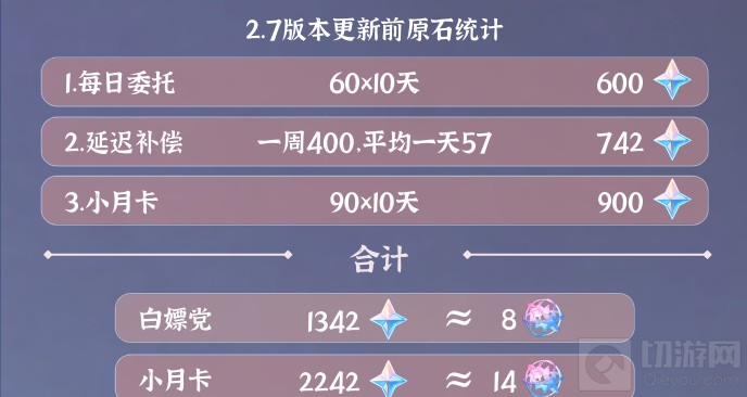 原神2.7版本可以获得多少原石