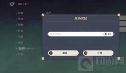 3、进入设置界面后再从左侧栏中选择【账户】,然后点击【兑换码】,跳转到兑换奖励界面;