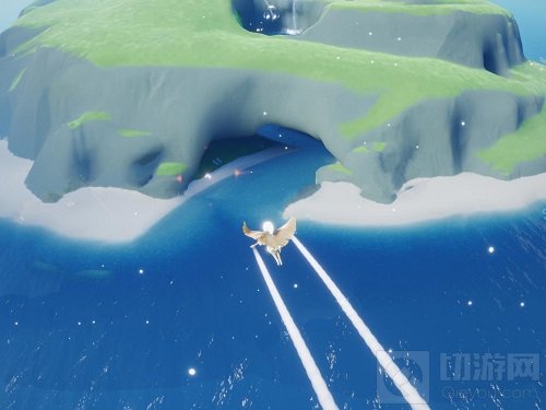 1、穿过云野右侧云顶浮石来到圣岛后,飞向三层瀑布正前方洞就可以看到先祖了。
