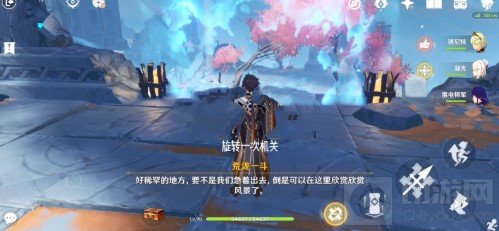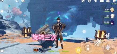 1.进入岩下迷境往右手边走,旋转一次机关。
