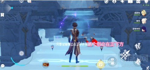 3.接着调整视角往右手边走下去,清理完怪后,后面的机关旋转三次,只要宝箱倒立在正下方就可以了。