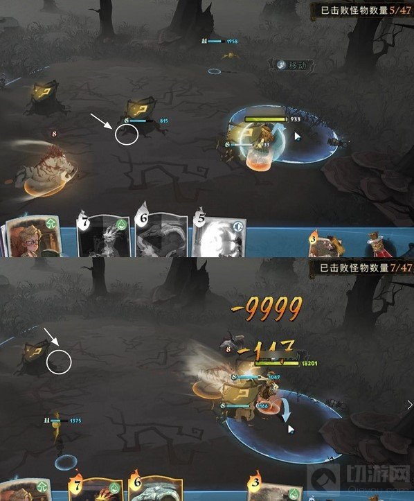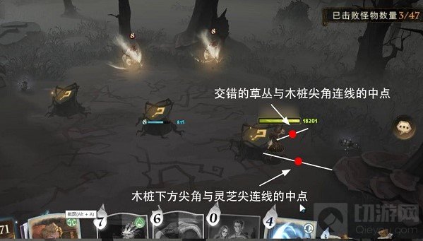2.点击草丛与木桩尖角连线的中点释放随从显形,迅速点击中间木桩下方位置,不要乱动,接下来等技能cd结束就搬完了。