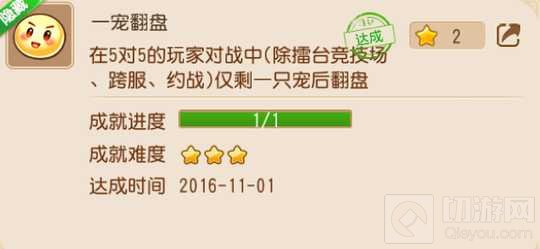 成就内容: 在5对5的玩家对战中(除擂台竞技场、跨服、约战)仅剩一只宠后翻盘