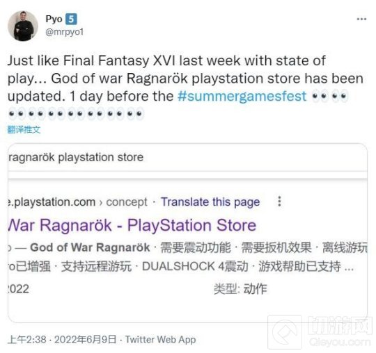 不过Pyro在推特发文表示,游戏的PlayStation商店页面最近已经更新。上次出现类似情况还是《最终幻想16》的页面,当时是在State of Play首次公开游戏预告片的前一天。以此为参考说明《战神:诸神黄昏》可能在夏季游戏节上也发布新公告。