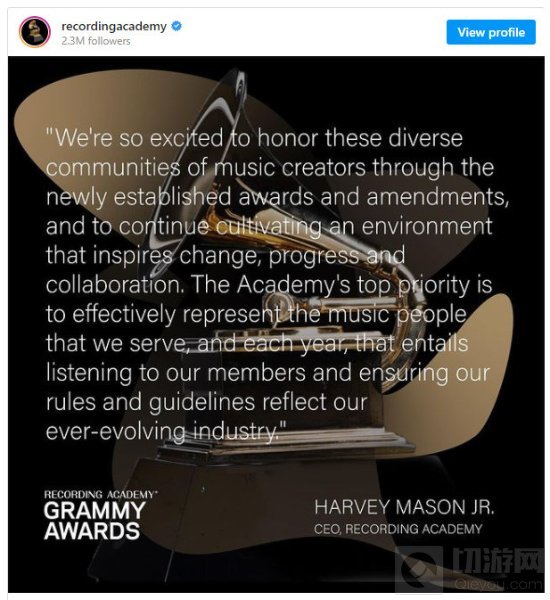 在发布的公告中,官方宣布了新增的包括“最佳电子游戏与其他互动媒介原声音乐奖”等多项新奖项,并宣布这些奖项将在2023年格莱美奖评选中正式出现。