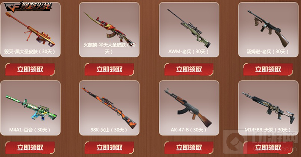 此外,CFer还可以在活动页面自选军火30天,主武器、皮肤、近战武器、补给礼包均可选择,千万不要错过!