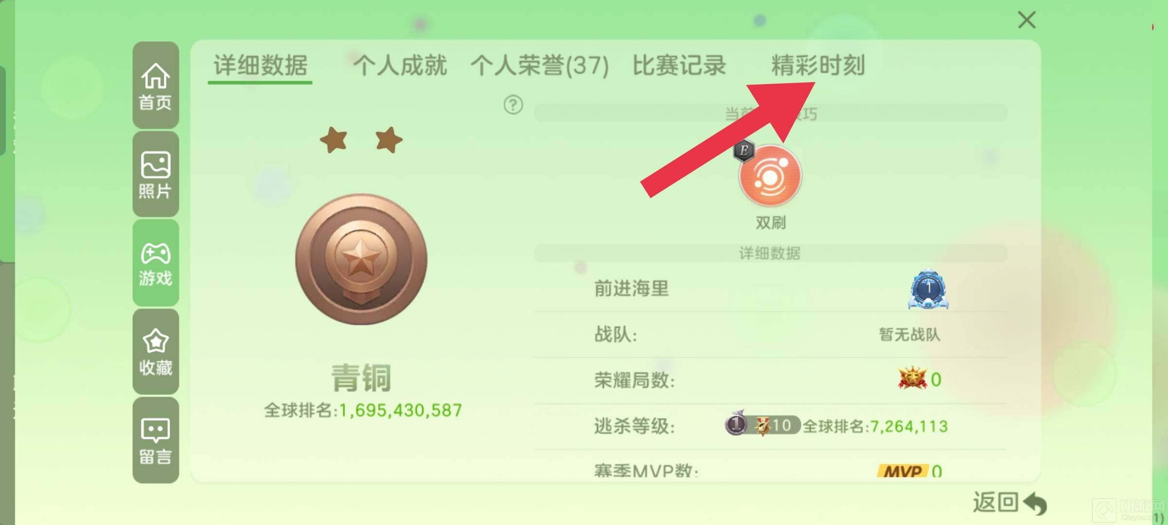 3.进去游戏栏目后点击最右上方的精彩时刻。