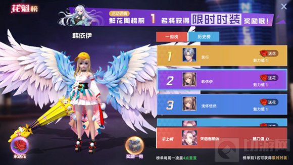4、游戏中花魁榜的榜首也是可以获得限定时装体验的哦,此处竞争激烈需要游戏内角色互送鲜花来提升排名哦。