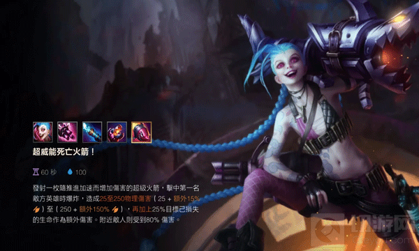2.而金克斯最恐怖的能力还不是粘人能力极强的2技能。金克斯最有威胁的还是她的大招超究极死神飞弹。手游继承了端游的技能急速和天赋机制。无限火力里面本身人头产生就非常的多,因此金克斯的被动非常容易点满。到了后期有着三级大招的情况下金克斯的大招甚至只有10秒!