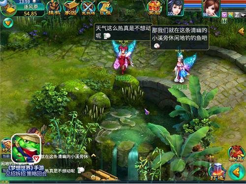在炎热的夏天里,是不是懒洋洋不想动呢但是又想练级领奖励呢?《梦想世界》手游自然能满足玩家们这个需求的,只需前往逐风原(158,60)找到钓鱼专家渔夫,即可前往对应水域钓上一整天的鱼,与三五好友一同结伴到清幽的小溪欣赏清凉美景的同时,领丰厚奖励,真是夏日一大乐事!