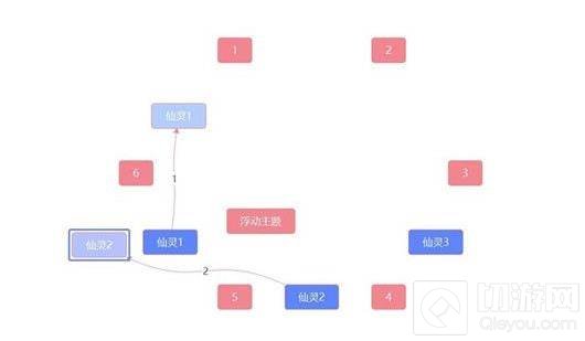 三个仙灵的:让三个仙灵按照六边形的距离来算,保持三个仙灵的位置相同就可以过了,因为仙灵在中间,相隔两根柱子,看准时机,不过还是要花点时间。