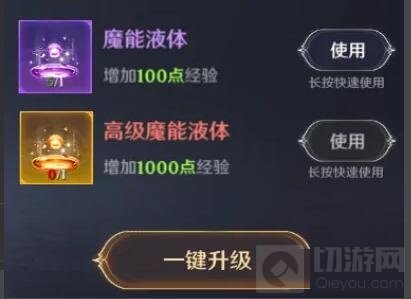 接着,跳转到飞翼界面,点击一键升级就可以使用魔能液体道具