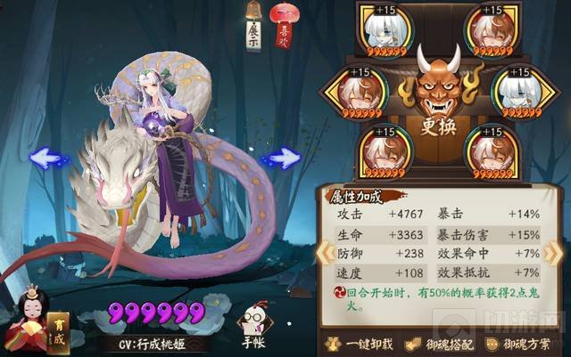 小然我拿紧那罗打斗技的情况并不多,只是在早期刚抽到她时拿来用一用。近期有大佬将她拿出来用来打浪川体系,小然我因为不太了解,在此就不过多赘述。紧那罗在斗技中的御魂选择也只有两种情况,分别是轮入道以及招财。轮入道能为她提供充分的暖机速度,只要触发的话收益绝对不会让人失望,而招财痒痒鼠们也都了解,毕竟“万物皆可招财”。