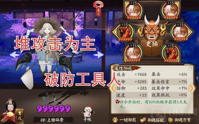 如果萌新们在选择速度的前提下堆不出来爆伤套,也可以放弃速度佩戴的方案,采用攻攻暴。毕竟在爆伤不够的情况下,即便暖机够快输出效果也不会太好,还不如放弃高频率的出手,转而让每一次出手伤害更高。2号位是否佩戴速度,需要我们根据自身御魂池来抉择,找到更符合你当前情况的佩戴方案。