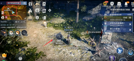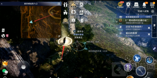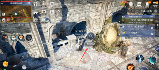 找完三处痕迹后,直接进去【废弃城址入口】,线索提示沿着地图边缘寻找棕色领路鹰,这里小编找了好久才找到。建议大家放大左上角的地图,顺着地图的主路跑,看到如下图的“U”型大弯时,顺着箭头方向直接跑进森林,碰到墙体后就贴着边缘往回走一小段,就能在一棵树旁边看到领路鹰,然后驯服它,这只可爱的领路鹰就归我们啦!(Tips:沿路的小怪非常烦人,会追着我们打= 。=,不要跟小怪缠斗,直接骑马跑进森林就行啦!)