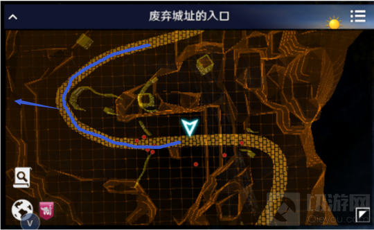 4、三处鹰的痕迹均无法通过自动寻路找到,不过有线索,根据提示,第一处痕迹在废弃的内城BOSS入口的左下方。