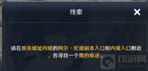 3、讨伐3次阿尔·伦迪后,就能获得棕色领路鹰的任务了。根据任务的指引前往废弃的内城,寻找三处鹰的痕迹。
