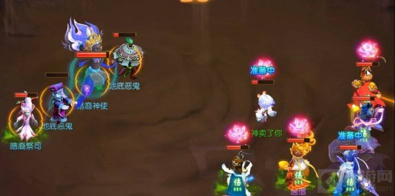4、第二层小兵很好打,直接清了打BOSS暗裔神使就行,带惠岸行者、唐僧、孙悟空和阎罗王,先打小怪,最后再打暗裔神使。