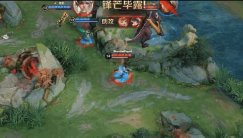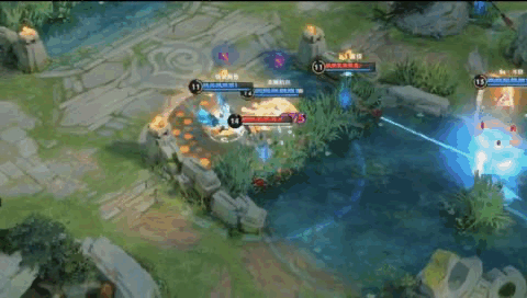1、埋伏时躲在中路草丛里,利用“三指拖屏”来观察对面的位置和技能使用情况,同时不忘利用走位来躲避敌方技能。