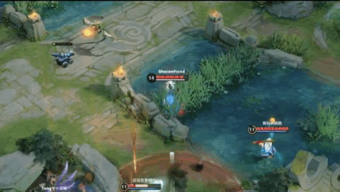3、用二技能拉身位,躲掉一部分敌方英雄的伤害,并且卡着墙边走,利用对方笨重的缺陷,最后隔墙使用一技能将其收掉。