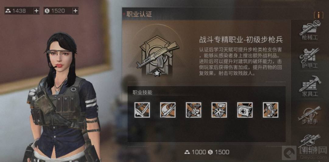 3. 枪械工、护甲工和家具工。这些职业属于建造类,护甲工是唯一个能制造四级背包扩容的职业,还是非常不错的职业!至于家具工的话不推荐给大家,因为家具工造的东西不光成本高,花时间,关键其他玩家还不爱买。