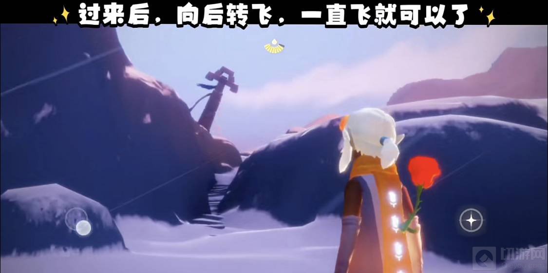 2、到达隐士山谷后,向右边转身然后起飞,一直向前飞。