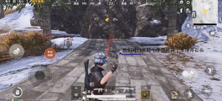 4.防空洞门口,有一块大石头,用手雷炸开。