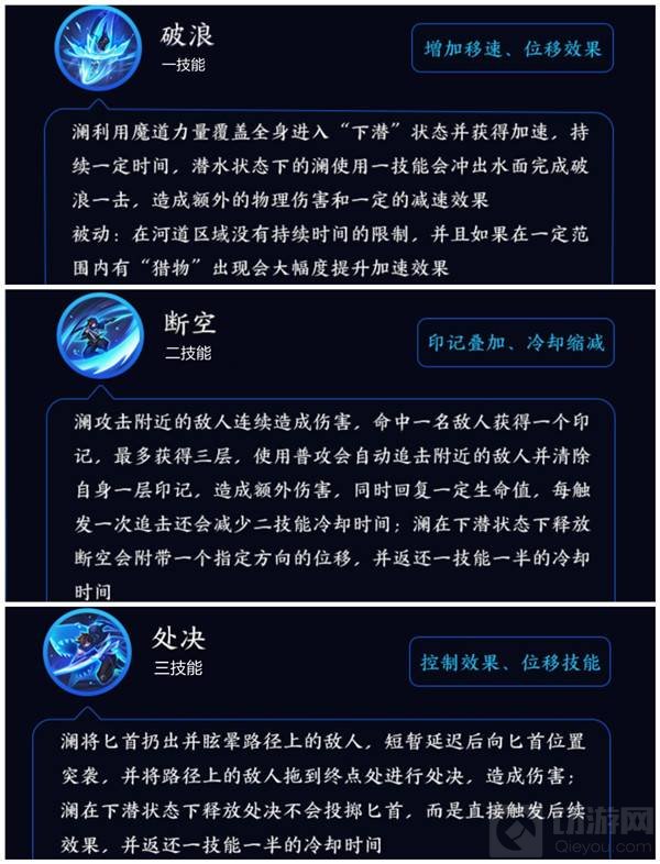 1、连招技巧:一技能 二技能 普攻 三技能 普攻 普攻。先使用一技能下潜加速,快速接近敌人完成破浪一击,近身后利用二技能印记再衔接普攻追击敌人,最后利用三技能回推后,再衔接普攻击杀敌人。