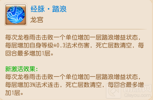 在本次调整中,踏浪经脉由每层提升法伤改为了每层提升3%法连概率,一旦踏浪经脉来到5层,龙卷法连概率将成倍提升,直接来到29%的超高概率。