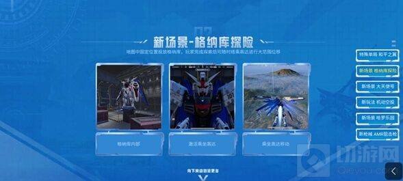 格纳库探险:地图中固定位置投放格纳库,玩家完成探索后可随时搭乘高达进行大范围位移。