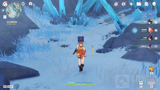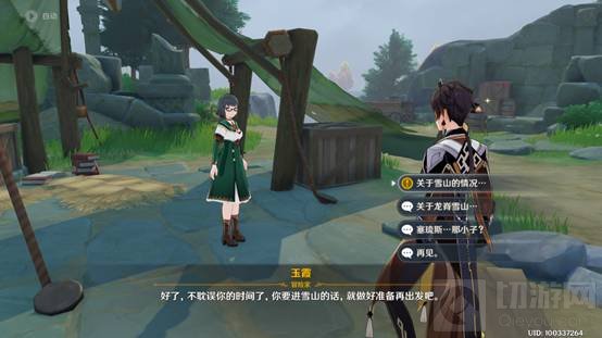 1.在营地和玉霞对话,询问雪山的情况,她会提到一种奇怪的冰堵住了道路,随后我们前往调查。