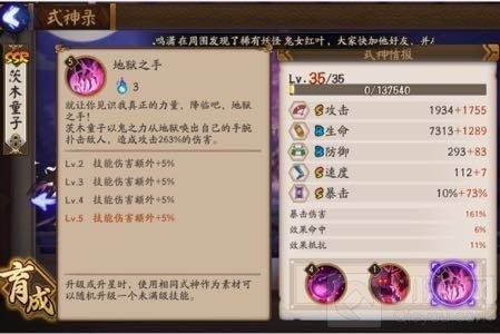 从茨木童子的技能中我们可以看出茨木童子就是个纯粹的输出型式神,简单粗暴,被动技能可以群体伤害,3技能全游戏最高攻击加成。