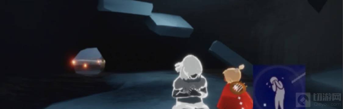 3、进入洞口后,在洞里边的中间位置会有一位先祖,这位先祖就是哭泣先祖了,点亮先祖追随回忆即可。