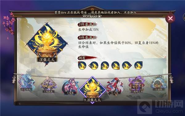④最后是涅槃之火,这个御魂一直都被大家忽视,其实涅槃之火是比较好用的。这个御魂在受到攻击以后会恢复一定的血量,而且也有一定的暴击属性,可以弥补白藏主的攻击力,涅槃之火可以在斗技场中试试,会给你带来惊喜。