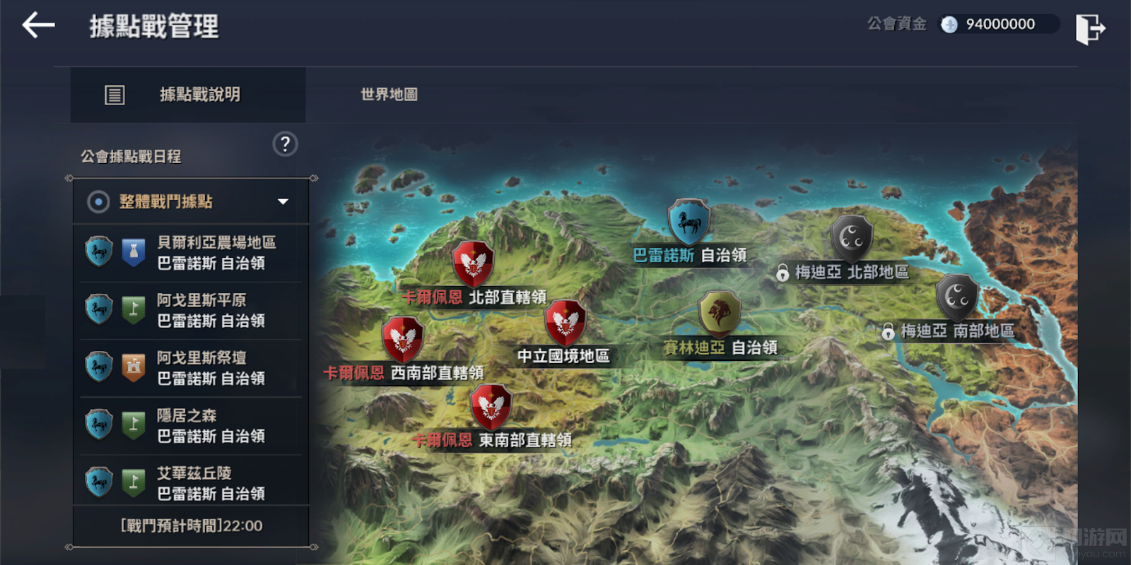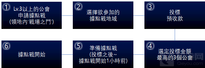 每个伺服器都有可以进行据点战的据点,每个据点由不同的3个公会进行据点战。