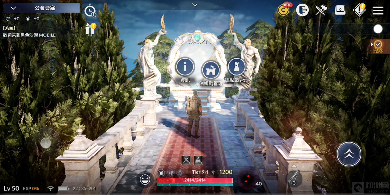 如果公会阶段达到3以上时,公会长以及副公会长透过公会要塞内的战场之门可以申请据点战。