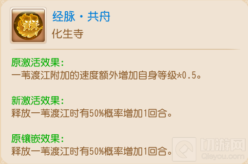 但在本次调整了共舟经脉之后,化生寺所带来的更加灵活且回合数更长的一苇渡江技能显然将更具吸引力。