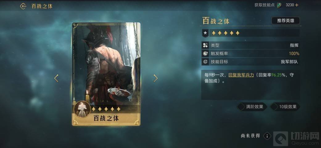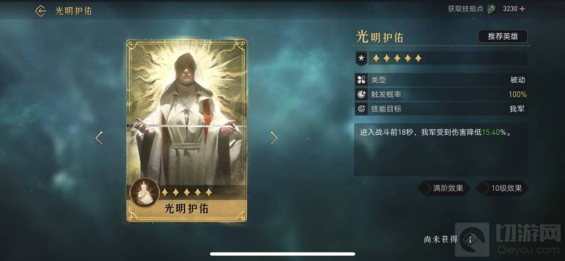 2、技能可以搭配光明护佑、百战之体,这两个技能可以帮助玩家过渡前期没有旗帜印记的时间,同时触发回复效果减小战损。琼恩专属技能钢铁意志:消耗怒气强化友军的技能效果,同时叠加旗帜印记,叠满6层后,造成一次谋略伤害,并回复我军一定军力。