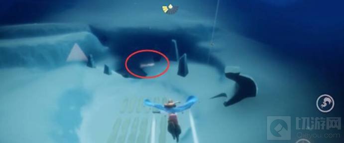 进入霞谷地图,一路来到两个赛道前的那个广场,先看一下冰上有没有,要是没有的话就从冰窟窿下到冰下,多转悠转悠就能看见了。