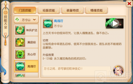 方寸的离魂符在PK中,一直是非常强势的技能之一。持续2回合的混乱状态,并且混乱状态不能被药品解除。