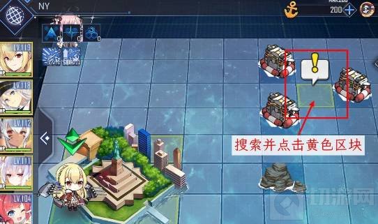 4.在作战海域移动舰队,搜索带有黄色标记的区块。